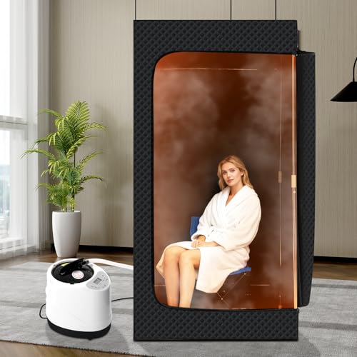 SMUG Sauna Box, Portable Home Sauna with 1200W Steamer Machine, 9 Levels Remote Control, Folding Chair, Upgraded Full Body Steam Sauna Tent for Home Indoor Outdoor Spa Relaxation(2.95' x 2.95' x 5.9'), Black Item Sku: