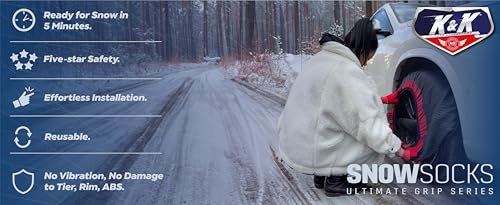 KNK Boutique K&K Automotive Snow Socks for Tires - Pro Series for Ultimate Grip Alternative for Tire Snow Chain - Snow Traction Device for Passenger Cars SUVs Trucks Winter Emergency Accessory European(XX-Large), XXLarge - Pro Item Sku: