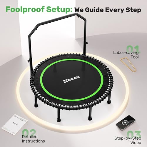 BCAN Rebounder Trampoline for Adult, 48" Fitness Trampoline with Bungees, U Shape Adjustable Foam Handle, Stable & Quiet, Indoor Outdoor Workout-Green, 48IN-GREEN, 48IN
