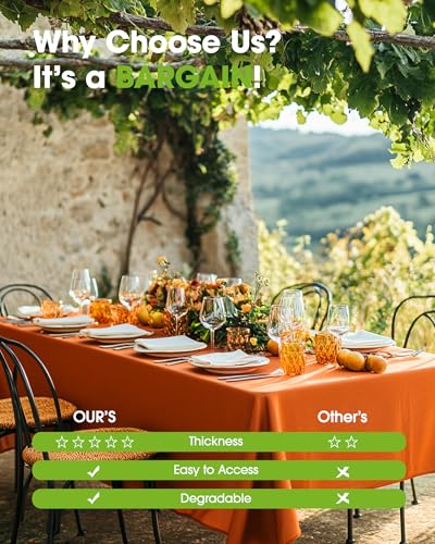 Pureegg Plastic Table Cloth Disposable 10 Pack, 54 x 108 Inch Table Cloths, Halloween Party, Thanksgiving Decorations, Harvest, Fall Tablecloths, Rectangle Tables, Leakproof & Sturdy, Orange, 54" X 108" Rectangle