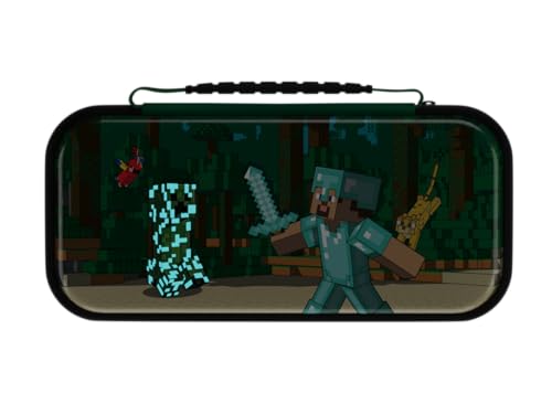PDP REALMz Nintendo Switch Travel Case Plus GLOW with Wrist Strap, Built-in Stand & Game Storage Pockets, Officially Licensed: Minecraft Forest Battle (Glow in the Dark), One Size Item Sku: