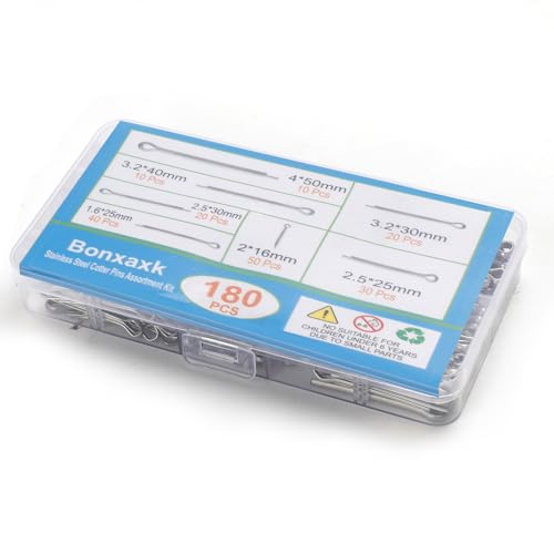 BONXAXK 180 Pcs Cotter Pins Assortment Kit, 7 Sizes Spring Fasteners Hardware Straight Pins, Hitch Pin for Trailer Locking, Clamps, Lawn Mowers, Trucks, Engine Repair in Towing Clips, Silver, 180PCS-Seven different sizes